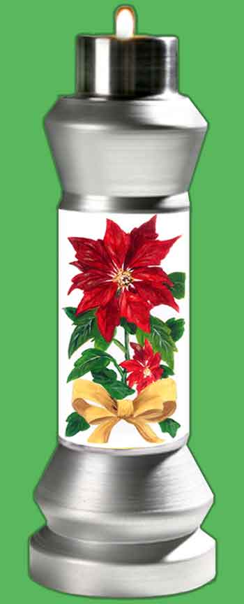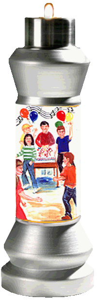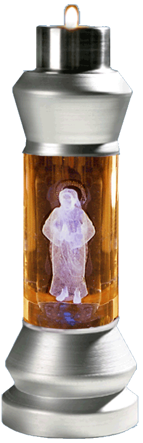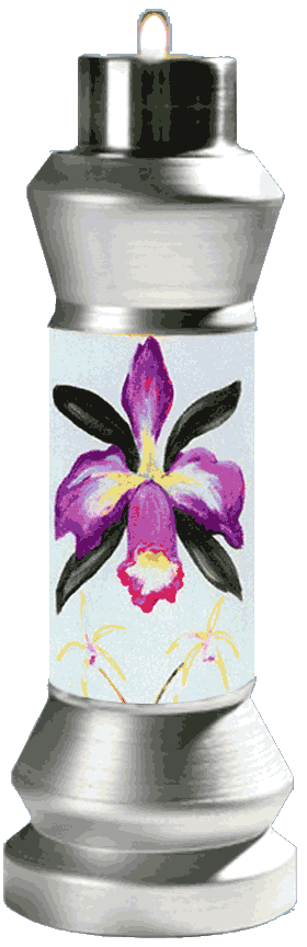 Our patented ‘slow advancing candle’ features a spring loaded mechanism that raises the candle as it burns so that the flame is always visible. Some designs are laser etched into the crystal column. Other designs are handpainted into the hollow crystal column using ancient Chinese techniques. A high-tech arrangement of LED lights shine through the crystal illuminating the designs in constantly changing colors. Some designs are complemented by a short sample of music which is carefully matched to the theme of the candle.