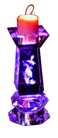 The patented stationary candle with light designs are beautifully crafted from K9 crystal, and feature our ever- changing color base with high-intensity light. Some designs are laser etched into the crystal column. A high-tech arrangement of LED lights shine through the crystal illuminating the designs in constantly changing colors.